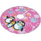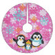 Winter Penguins Hot Pink tree skirt features a hot pink background with lots of white snowflakes and some intermingled snowflakes of blue, pink, and orange. Features three darling penguins wearing winter hats, scarves, mittens, and ear muffs as well as some snowflakes of blue, orange, and pink. This penguin holiday tree skirt makes a great gift or get one for yourself to enjoy for years to come!