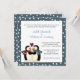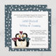 Cute winter wedding invitation done in a fun federal blue, with white polka dot background. A white text area over the background is decorated, with country primitive graphics of a penguin couple all bundled in scarves, with a red heart between them. All text is customisable to suit your wedding needs. Adorable winter wedding invitation for the fun loving couple. Matching wedding products available.