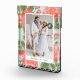 Display a treasured holiday memory with our chic and elegant photo block. Your vertical or portrait orientated photo is framed in white and surrounded by handpainted watercolor red peony flowers and green foliage. Personalise with your custom caption and/or names.