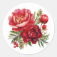 Sticker is shown in the round with a lovely deep pink-red peony floral watercolor print.
