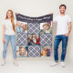 Winter Personalised Blue Grey Plaid Photo Collage Fleece Blanket