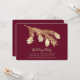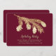 Stylish flat style holiday party invitation done in a deep berry red, with graphics of a gold tone pine branch with pine cones hanging down. Personalise all the text, on the card, to suit your party needs.