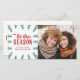 Celebrate the holiday season in style with a rustic winter pine holiday photo card. The trendy Christmas photo card features a green pine border, the words "tis the season" in red stylish typography, and placeholders for custom text and a photo.