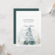 Rustic winter scene with watercolor pine trees and snow landscape wedding invitations. The text boxes are easy to personalise with your own information. The back of the card is a dark pine green that matches the colour of the trees.
