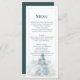 Winter wedding menus featuring a watercolor pine tree in muted shades of pine green and a soft muted background. The back of the card is pine green. The text templates are easy to personalise with your own information, but if you need help, please email me at shutterbug600@yahoo.com.