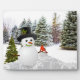Winter Pine Trees Snowman and Cardinal Bird Plaque