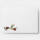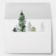 Winter Pine Wedding envelope features watercolor of evergreen trees within, a simple pine branch with cones on front