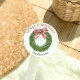 Winter Pine Wreath Striped Red Bow Merry Christmas Classic Round Sticker - Send your Merry Christmas and holiday wishes to friends and family with this editable Christmas sticker. Featuring a hand-painted simple winter pine wreath with striped coquette red bow. Personalise this classic Christmas card by adding your family name.
