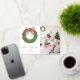 Winter Pine Wreath Stripes Red Bow Photo Christmas Holiday Gold Foil Card - Send Merry Christmas and holiday wishes to friends and family with this editable Christmas photo card template with real foil. Featuring a hand-painted simple winter pine wreath with stripped coquette red bow. Personalise this classic Christmas card by adding your family name and year, favourite photo and custom message in the back.