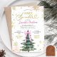 Christmas Pine Tree Baby Shower Invitation, Pink Bow Baby Sprinkle Holiday Baby Girl Invite, Winter Forest Gold Sprinkle Baby Shower