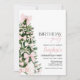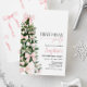 Winter Birthday Invitation with watercolor pink coquette bow.
