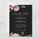Elegant traditional floral save the date wedding card with chic pink flowers, dark hunter green foliage, and a stylish faux gold typography script over a black background. +++++++++ Perfect for a winter rustic floral themed wedding.
