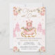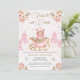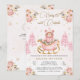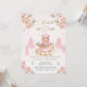 Winter Pink Gold Floral Teddy Bear Baby Shower Invitation