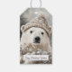A cosy winter polar bear in a knit hat with softly falling snow sets a calm, wintry mood for this holiday gift tag, featuring cosy Christmas wishes on the front and To and From lines on the back for easy gifting. Neutral taupe and ivory pair beautifully with linen ribbon and kraft paper, an effortless, modern rustic finish for your holiday gift wrapping.