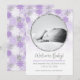 Announce your newborn baby's birth this holiday winter season with a bright light purple and silver glitter snowflake custom photo birth announcement! This winter birth announcement is fully customisable! You can edit the text and add your own photo by clicking "personalise this template". This winter birth announcement features a silver glitter frame surrounding a round photo of your new baby! The words "Welcome Baby!" are in a silver glitter cursive font below. There is room to add all of your baby birth stats. This snowflake birth announcement has a fun and whimsical purple, white, and silver, snowflake pattern background.
