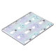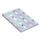 Four squares in pale blues and purples are decorated with snowmen wearing top hats and winter clothing, like toboggans, scarves, and mittens. White stitching adds a decorative touch, giving the repeating pattern the appearance of a quilt, creating a perfectly cosy feeling for winter.