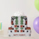 Winter racoon and trees Happy holidays Christmas Wrapping Paper that showcases a racoon in winter clothes, trees and ornaments and gifts.