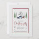 Winter racoon and trees Happy holidays Christmas party Invitation that features a racoon in winter clothes, a house and snowfall.