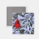 A beautiful Red Cardinal resting among snowy winter evergreens.