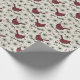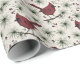 This elegant winter wrapping paper features a pattern of hand-drawn red cardinal birds perched on a pine branches.