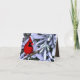 A beautiful Red Cardinal resting among snowy winter evergreens.
