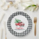 Winter Red Truck First Birthday Black Plaid Paper Plate