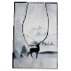 A gift bag with a watercolor image featuring a black silhouette reindeer standing among some pine trees. Grey black and white neutral colour scheme.