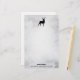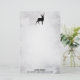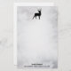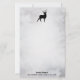 Stationery paper with an image featuring a black silhouette reindeer with big antlers. Grey watercolor background.