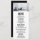 Event menu with a watercolor image featuring a black silhouette reindeer standing among some pine trees. Grey black and white neutral colour scheme.