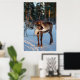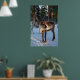 Winter Reindeer Snowing Mountain Pretty Landscape Poster