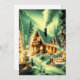 Step into a serene winter wonderland with this enchanting greeting card featuring a cosy log cabin nestled amidst snow-covered trees. The softly falling snow, twinkling Christmas lights, and the warm glow from the windows invite a sense of peace and holiday cheer. Perfect for sending heartfelt wishes for a joyous holiday season or a Happy New Year, this card captures the magic of winter's quiet beauty