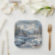 Pretty paper plates with an beautiful Winter scene. Tall snow covered mountains, above a pine tree forest and a beautiful flowing river. The ground is covered in a fresh layer of fallen snow. Perfect addition to your Christmas, Holiday celebration.