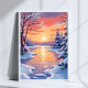 Winter River Sunset Landscape Snow Watercolor Poster Print