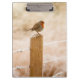 Design features a photograph of a beautiful robin redbreast bird sat on a fencepost.