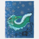 Blue, green and teal dragon profile portrait with snow falling all around. Black tribal rose.