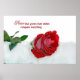 Red rose in snow with quote.