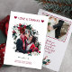 Rustic winter wedding thank you photo card with white and red burgundy trendy watercolor peony roses flowers and blooms with seasonal pine hunter green fir branches and holly berries over a clear white background.++++++++ Personalise it with 2 photos (one square on the front side and one landscape on the reverse), with your signature and text on front and back! ++++++++++ If you don't need photo and text on reverse, just delete them!