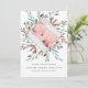Watercolor leaves winter baby birth square shaped photo announcement card designed to be quickly and easily customised.
