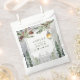 Create a charming takeaway for your guests with the Winter Rustic Pine Trees Lantern Botanical Wedding Favour Bag. This beautifully designed favour bag features a serene winter scene with pine trees and a hanging lantern, perfectly capturing the essence of a rustic winter wedding. Accented with botanical elements and customisable with your names and wedding date, it's an elegant way to package treats or small gifts for your guests. The snowy background and detailed foliage make these bags a delightful addition to your wedding decorations, helping to create memorable moments for everyone in attendance.