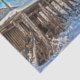 Rustic winter snow covered cabin craft decoupage tissue paper. Blue sky white winter woodland trees scenery. Image copyright Marg Seregelyi Photography.