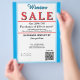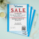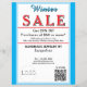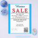 Jewelry or any business type supplies. Festive light blue and white border. Insert Sale price and date details. Upload Your Logo, or delete to leave area blank. Insert Name and Website or other contact QR Code. Winter is written in sky blue azure blue script. Sale written in large red typography. Thank You is written inside large white heart on backside. Original Design by TamiraZDesigns.