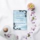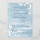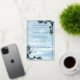 This elegant wedding invitation features a winter wonderland scene in shades of blue, complete with snow-covered pine trees. The silver frame adds a touch of sophistication to the design. Perfect for a winter wedding, this invitation will set the tone for your special day. Personalise it with your own special occasion.
