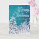 Winter scene snowy trees, vivid blue sky and snowflakes Bible verse Christmas card design. Fully customisable with your own family name on the front and you can change the messages and verses inside the card as you wish. The back design contains the Bible verse Proverbs 17:22 - 'A merry heart doeth good like a medicine: but a broken spirit drieth the bones.' (KJV.)