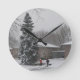 Wall Clock, 25.4 cm Round Black Wooden Frame