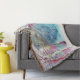 A quality printed throw has its advantages. This is a much finer weave throw than its loopier cousins, and though lighter, it is worth the investment for custom room accessorizing. The back is much prettier than the typical brown, and the fringe on the long sides very vivid, the selvage nicely done. Before photographing, I washed the throw in cold water, delicate, with a thicker woven throw the same size. On tumble dry low, this throw was dry in half the time as the other. This is a very practical quality if you use throws for furniture covers or to wrap up in frequently. The sleekness of the fabric makes it a great layer for accenting or protecting without the feeling of sitting on too much stuff. Perfect for napping or when you feel a light chill coming on. The color printing is beautiful and on this fabric, matched the design and color of my Photoshop image. This is an advantage for blending room fabrics and colors. The fringe on the short sides prints the colors from the design image and therefore varies from the side fringe. I streaked a white fractal line through the plaid pattern to give the illusion of weaving. This printed as crisp as an illusory thread, and put some white in the short side fringe, showing another advantage of print vs loomed- for artistic purposes, line lines, detail, and color integrity can be planned and preserved. My loomed throws have color limitations and more of a needlepoint texture. Print throws reproduce an exact image. The throw felt a little stiff straight out of the package, but this went away in the first delicate wash. Of course I searched the wash water for ink or bleeding and there was none.