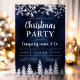 Time to celebrate the holiday season and Christmas with this luxury silver glitter snowflakes sparkles and silver glitter pine tree forest on an elegant festive navy blue watercolor background, featuring a modern cool script font typography, perfect for Christmas corporate business party, employees parties and more! With real silver foil.