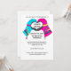 These custom wedding invitations are perfect for ski resort weddings and winter events for skiers and snowboarders. They feature an illustration of a pair of ski gloves in hot pink and bright blue with all of your wedding details in charcoal grey lettering.