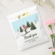 Destei's watercolor illustration featuring women skiing across white snowy slopes with green fir trees under a light blue winter sky, with snow falling around them. The design has space for a custom thank you message, making these favor bags a festive finishing touch for gifts, party favors or treats.