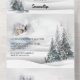 A beautiful watercolor design featuring soft white snow enveloping fir trees and a winter log cabin. A single snowman appears on the top third; a white snow owl in the middle and a snow fox on the bottom. The outside is bathed in winter ice colours and has a grove of fir trees across which soft snow is falling. These are ideal for winter baby shower celebrations.