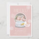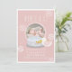 This cute girl's photo birth announcement features a baby pink background with a snow globe, snowflakes, and white dove. The reverse side features a light grey background with white snow patterns. Personalise for your needs. You can find more matching products at my store.